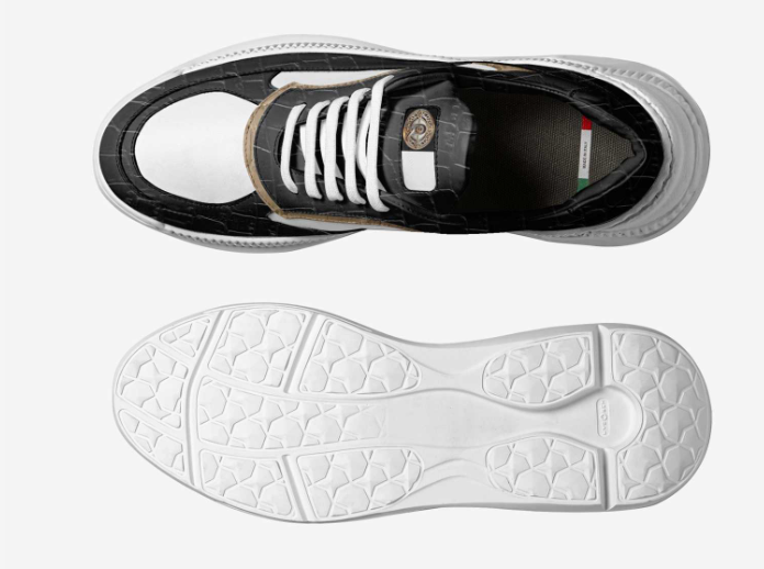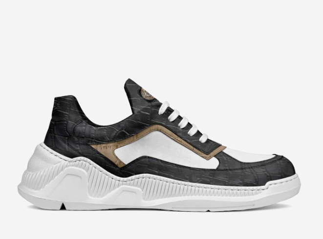 Experience prestige in this low-top sneaker featuring a sophisticated design with layered elements, cotton laces, and metallic eyelets. Meticulously crafted from prestigious Italian materials, it seamlessly blends luxury with contemporary aesthetics. The logo on the tongue ensures maximum visibility, adding an exclusive touch. With a comfortable and stylish sole, it strikes the perfect balance between fashion and comfort, making it a timeless statement piece.